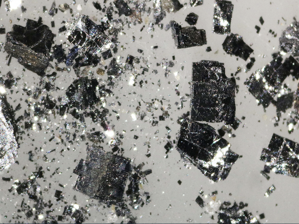"This image reflects an exploration of sound and visual forms and volumes, revealing the mineral form of lead, galena. On the planet Venus, this crystallized metal is found falling on the peaks of certain Venusian volcanoes, such as Maat Mons."