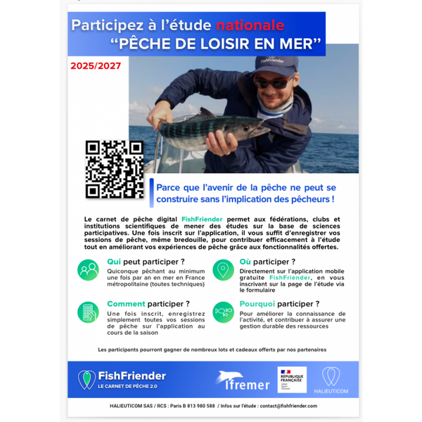 Nous vous invitons donc sans plus tarder à vous inscrire à cette étude, et à partager ce message avec vos connaissances qui pêchent en mer, même très rarement, afin qu’ils puissent contribuer à leur tour.
